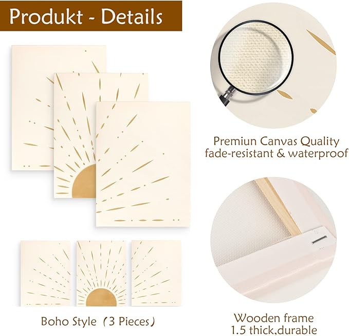 - Modern Boho Style: Featuring a beautiful design of the sun rising on the horizon, our modern boho wall decor combines abstract art and the Bohemian style for a unique and elegant touch to any space. It can easily brighten up your room and give it a warm and welcoming atmosphere.