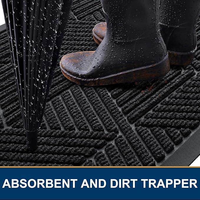 - 【Moisture & Dirt Absorbent】: The surface of the Smiry door mat is made of woven polyester fabric. The deep grooves can effectively trap the dust, gravel, mud, sand and other clutter. The sturdy beveled rubber edge will not accumulate water. Even rainy, snowy or muddy weather will keep your home dry and clean.